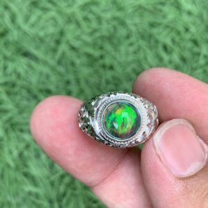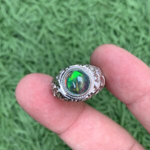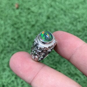Be the first to review “Natural Round Black Opal Ring. Natural Opal In Hand Made Crafty Work Silver Ring. Opal Ring. 2.45 Ct Full Fire Opal In Silver Ring.”