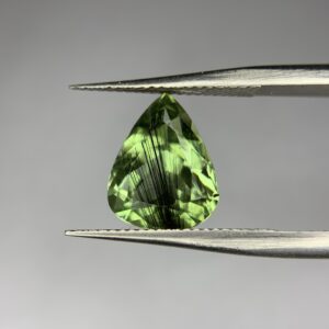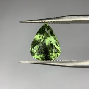 Introducing a truly unique 3.10 ct Natural Peridot featuring rare Ludwigite inclusions—a captivating internal pattern that elevates this gem from beautiful to extraordinary. Sourced from the renowned Supat Mine in Kohistan, Pakistan, this peridot showcases nature’s artistry with a distinctive pear fancy cut, expertly shaped to highlight its color and internal character.