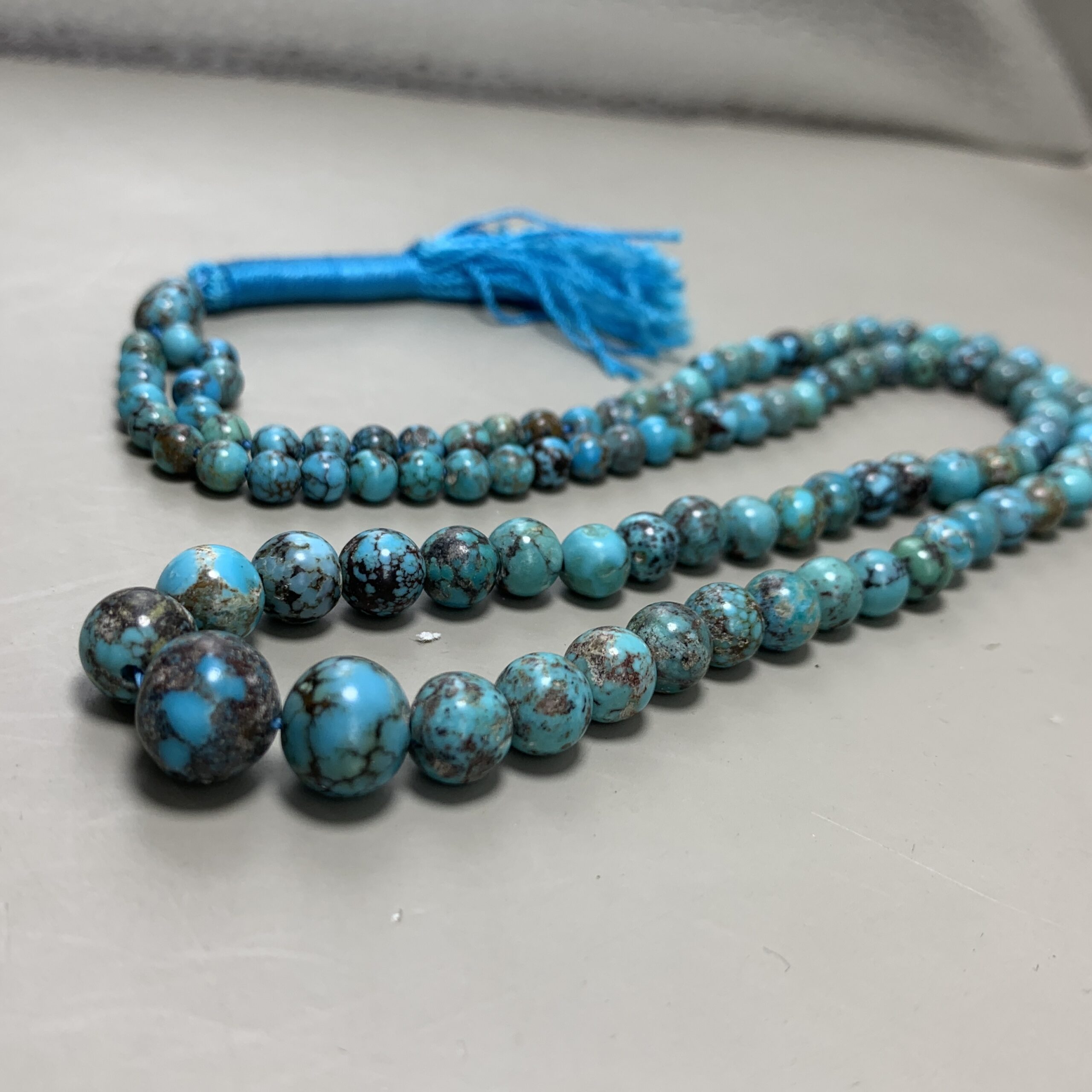 Natural Turquoise with Pyrite Prayer Beads – 102 Round Beads – 30.18g – Spiritual Mala / Tasbih / Meditation Strand