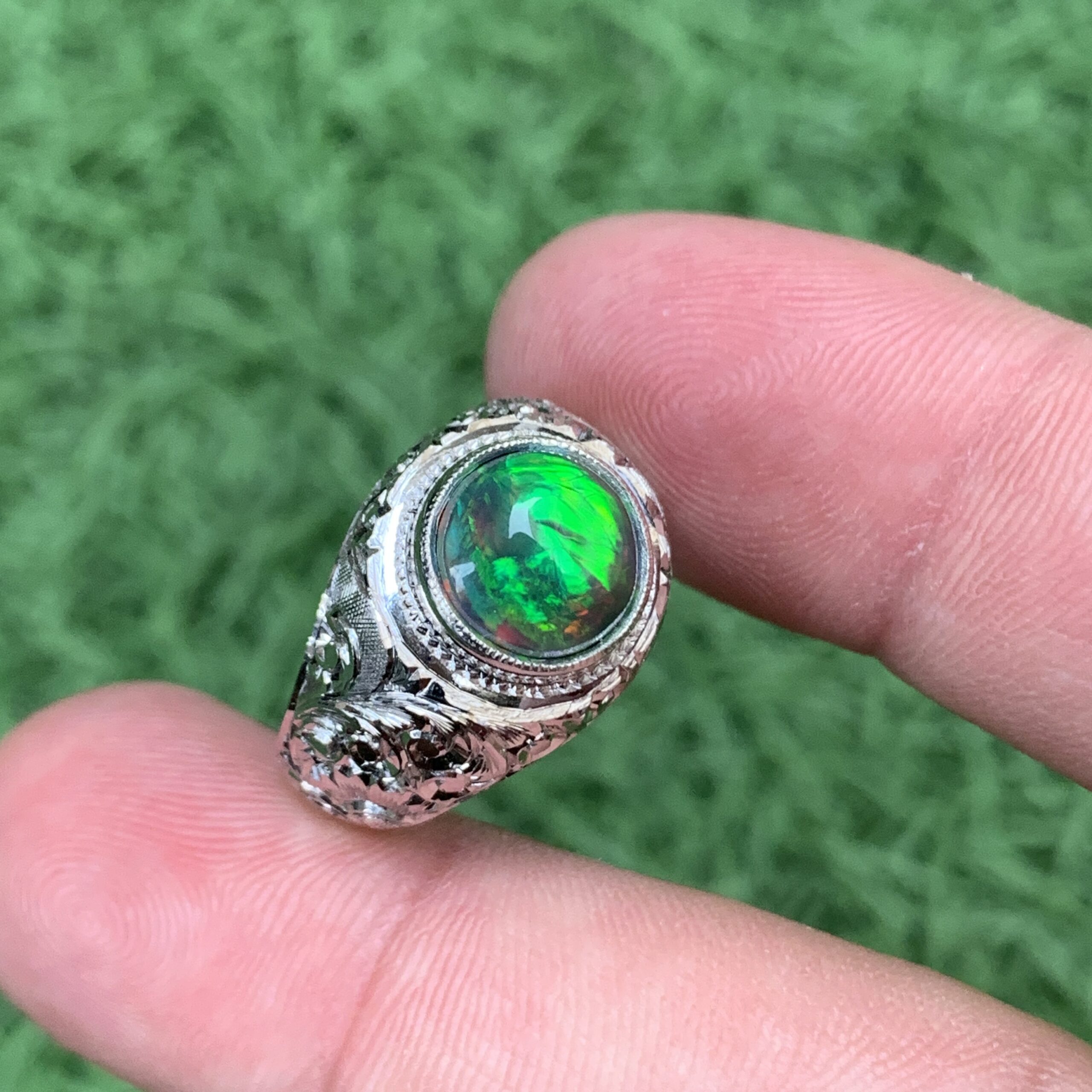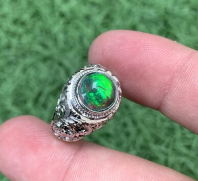 Natural Round Black Opal Ring. Natural Opal In Hand Made Crafty Work Silver Ring. Opal Ring. 2.45 Ct Full Fire Opal In Silver Ring.